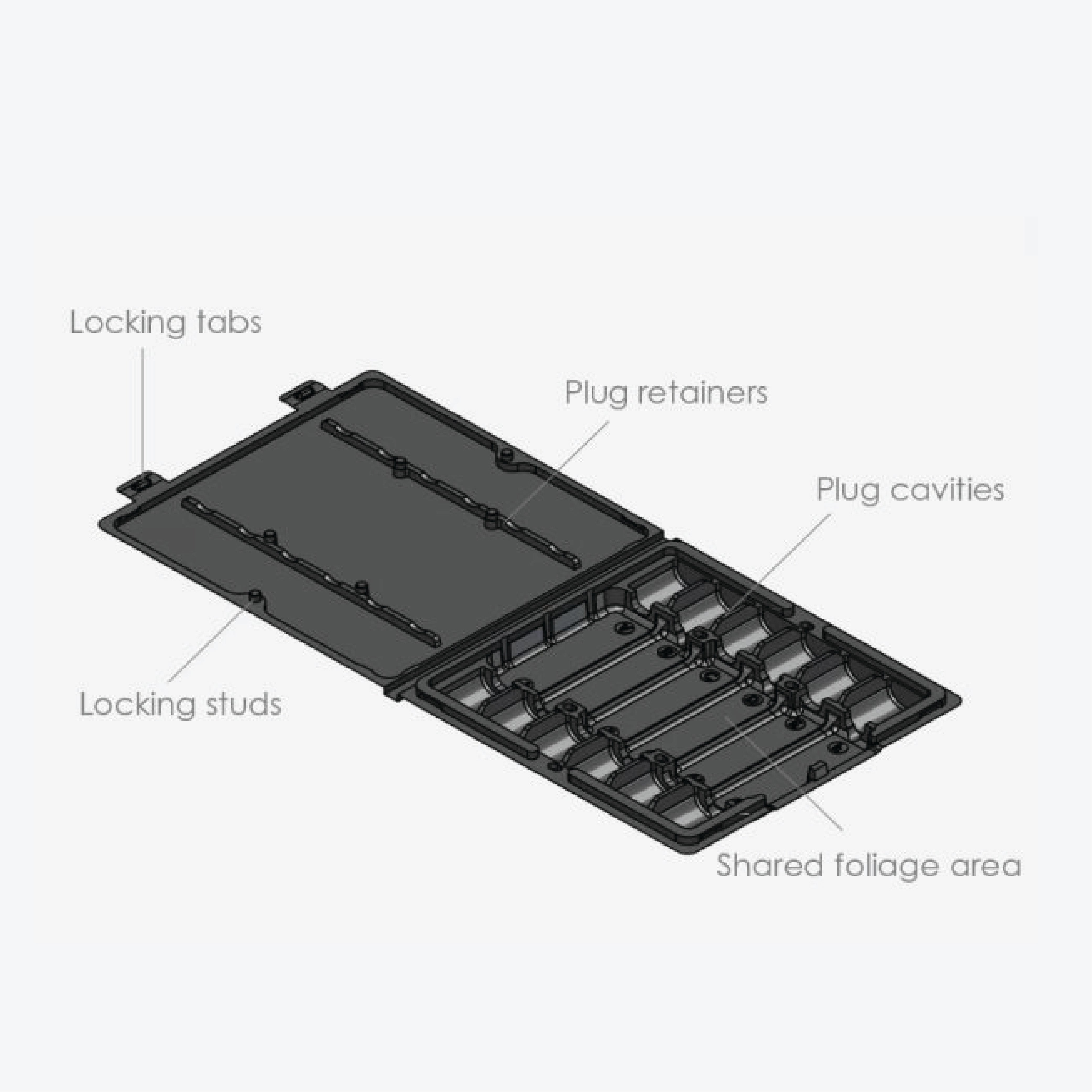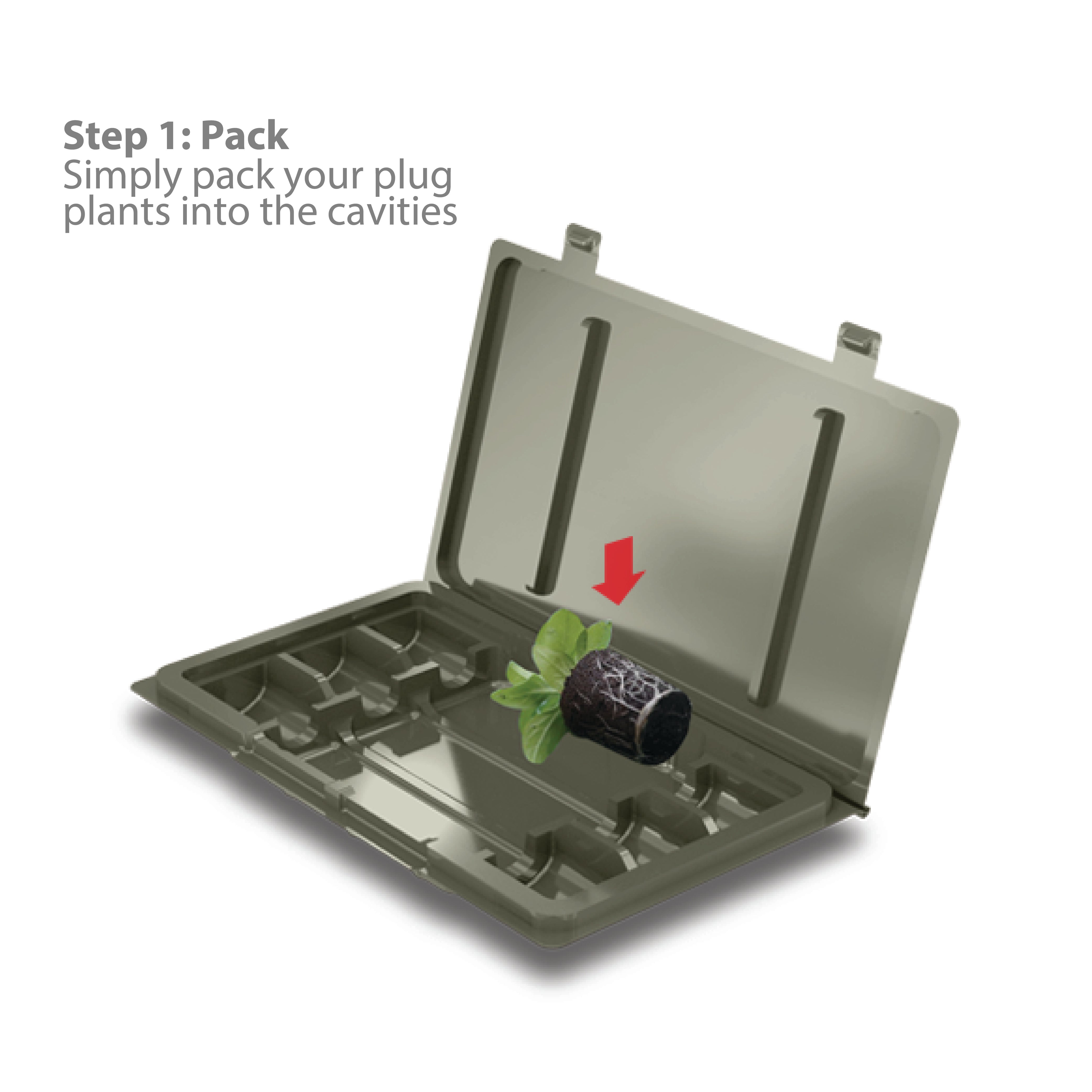Safely mail up to 12 plant clones with this letterbox-friendly plug plant pack. Durable 450µm Jazz rPET, moisture-retaining clamshell design, with secure locking tabs and plug retainers for worry-free shipping (fully recyclable).