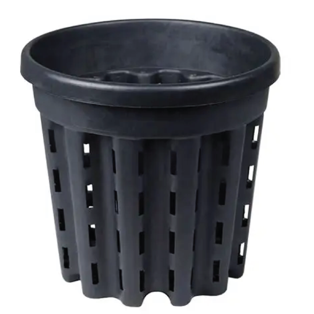 The corrugated side walls with perforated outer edges provide the perfect growing environment for air pruned roots. Usually in a round pot the roots grow in a swirled direction whereas with the root prune pots, the roots grow through the holes making contact with the outside air. This naturally stunts the growth of the roots which sends a signal to the plant to grow more roots from the centre of the plant.